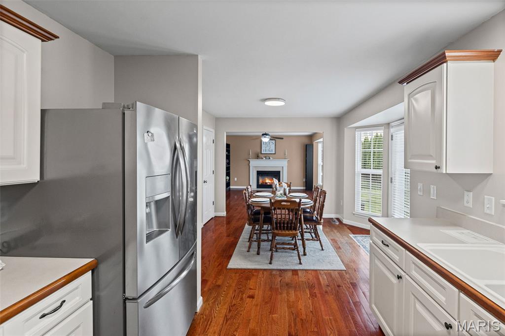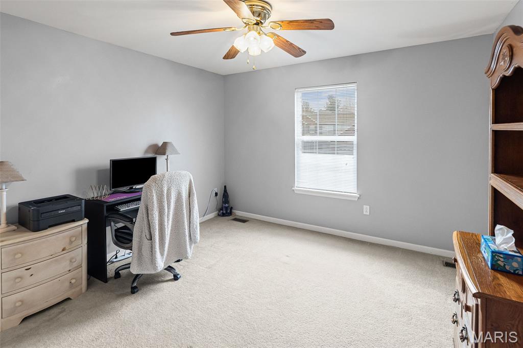 Check out this well-maintained two-story home for under $350,000 located in the highly sought-after Fountain Place, within the desirable O'Fallon High School district. The main level features hardwood flooring and includes a versatile flex room, a cozy living room with a warm gas fireplace, spacious kitchen with a breakfast nook, a convenient powder room, laundry room, and a finished, insulated three-car garage. Upstairs, you'll discover three bedrooms, with the potential for a fourth as the primary bedroom suite is currently open to the adjoining bedroom, currently utilized as an office. The primary bedroom boasts a large walk-in closet and a sizable bathroom complete with double sinks, shower and bathtub. There are two additional bedrooms and a guest bath. The partially finished basement is equipped with a professional vapor barrier installation, stunning LVP flooring and is roughed in for a future bathroom. Outside, enjoy the patio and fenced-in backyard, perfect for relaxation and entertaining. HVAC system with air purifier and A/C replaced in 2024. This home provides the perfect backdrop for creating cherished memories! Situated near Scott AFB, downtown STL, dining, hospitals, shopping, and highways. Passed Fairview Heights City Inspection. Don’t wait—contact your favorite agent today!