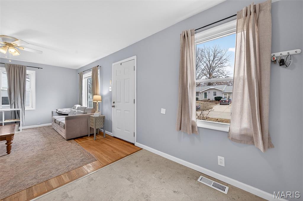This charming 3-bedroom, 1-bath home is tucked away on a quiet street in the heart of Maryland Heights, just minutes from Pattonville High School. Inside, you’ll find hardwood floors throughout the main level and an updated kitchen featuring stainless steel appliances—perfect for both everyday living and entertaining. The partially finished basement offers additional living space ideal for a family room, home office, or workout area, with plenty of storage still available. Fenced backyard is perfect for pets or play. Conveniently located near parks, shopping, dining, and major highways, this home offers comfort, functionality, and an unbeatable location. Don’t miss your chance to make this one yours!