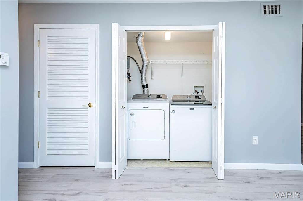 Just a few steps up to this great condo that feels almost new. Step into a large living room 18x14 that has an abundance of natural light. Slider leads to a 14x6 balcony deck to catch some outdoor time. Kitchen has stainless appliances, pantry, smooth top range, microwave/hood, dishwasher and oak cabinets. Plenty of room for a four top table and chairs. Double doors in living room open to a full size laundry closet. Hall has a linen closet and a full bath. Primary suite is 14x12 with 10x5 walk-in closet plus a 3/4 bath. The safe in closet stays! Front bedroom is also a generous size at 12x10 with a double closet. Freshly painted and luxury vinyl plank flooring in all living areas truly make this place feel almost new. There is also a small exterior storage closet to store some essentials. Don't forget there is covered parking with #29 assigned. Low fees for everything included so come see your new home opportunity right away. You can walk to shopping right next door and around the corner to more shopping and restaurants. Real convenient location without even getting into a car. Showings start this Friday. Thanks!