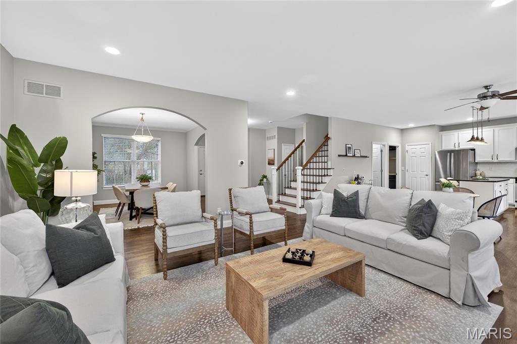 OPEN HOUSE CANCELED. Located in the popular Webster Groves School District, this beautifully updated home, built in 2002, offers over 3,100 square feet of comfortable living space with 4 bedrooms and 3.5 baths—plenty of room to spread out. You’ll fall in love with the refinished hardwood floors on the main level and the rich wider plank hickory floors recently installed on the 2nd level. The open-concept main floor is ideal for entertaining and features a bright white kitchen with granite countertops, center island, subway tile backsplash, and stainless steel appliances, along with a large dining room. A gas fireplace anchors the spacious family room and overlooks the large fenced backyard. The main-floor powder room and laundry with built-ins have both been recently updated with custom finishes. Upstairs, the generous primary suite offers wood floors, a tray ceiling, and an ensuite bath complete with a soaking tub, double-sink vanity, and glass shower with brand-new doors. Three additional bedrooms—all with wood floors and views of the backyard—share a large hall bath. The finished lower level, featuring brand-new carpet and fresh paint, provides the perfect space for movie nights, a playroom, or guests, and includes a sleeping area or home office along with a full bathroom. The private fenced backyard has a lovely patio and plenty of green space to enjoy! Additional highlights include a 2-car garage, large driveway with extra parking, and newer roof in 2021 and new HVAC in 2025! Conveniently located near restaurants, grocery stores, shopping, and gas stations, and perfectly situated between Webster Groves and Kirkwood. This is a must see!