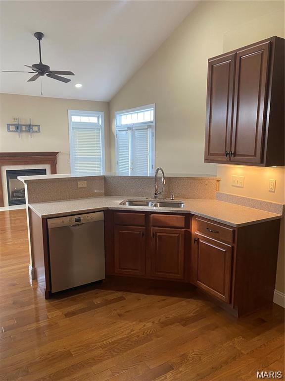 Gorgeous, Spacious, 4 Bedroom, 3.5 Bath, 2 Car Garage, 1.5 Story Villa Available for Rent! Over 3200 Sq ft of Total Living Space. 2 Story Entry Foyer. Beautiful Hardwood Floors on Main Level. Open Kitchen with Breakfast Bar looking into your Great room with gas fireplace. Main Floor Master Bedroom Suite includes private En Suite with double sinks & Jetted tub and Separate Shower. Also on your main level there is a formal dining room, 1/2 bath, and vaulted ceiling. Upstairs you have 2 more bedrooms and full bath plus a 12' x 18' loft that would make a perfect home office or additional family room. You'll love your finished walk out lower level which includes a 4th bedroom or could be a private office and a 3rd full bath. Wet bar overlooks a combination recreation area/family room. Lots of transom windows with plantation blinds. There is also a Composite Deck out back. Grass Cutting & Snow Removal included.