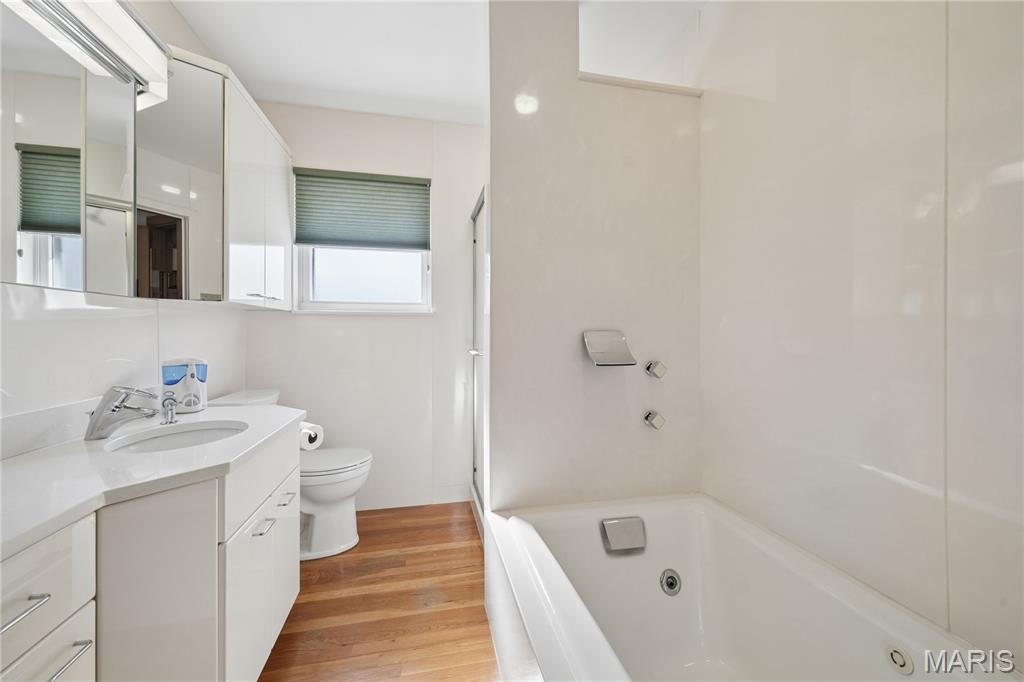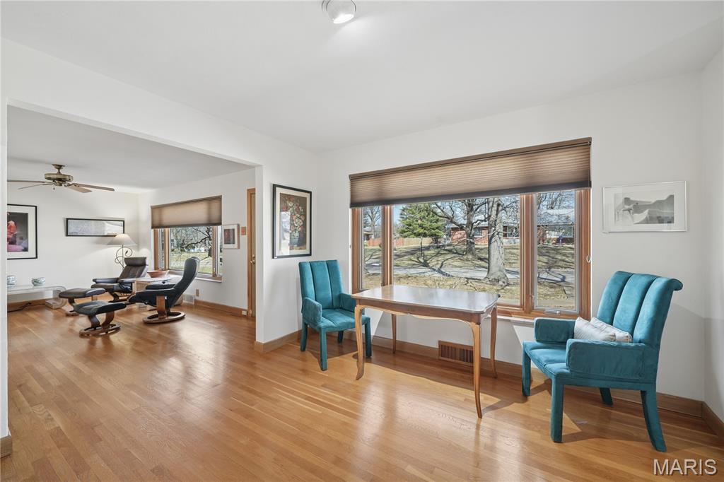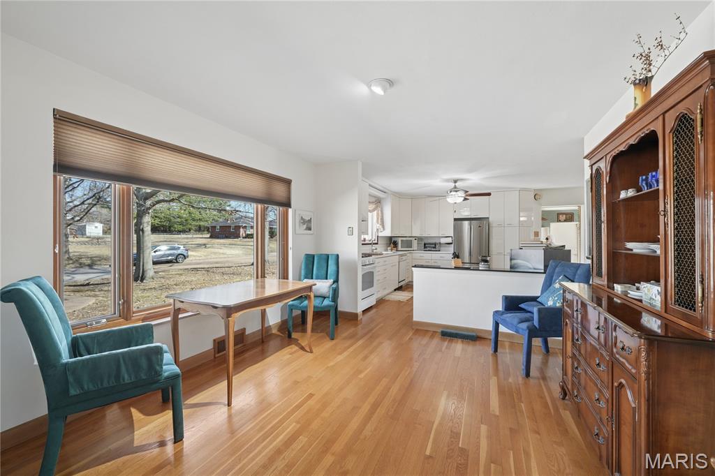 Welcome to 838 Middleboro, an all-brick ranch offering timeless appeal and a low-maintenance exterior. This well-maintained two-bedroom, two-bath home features hardwood flooring throughout much of the living space and custom Pella wood-frame windows, some equipped with Hunter Douglas custom shades, blending style with energy efficiency. The roof was replaced approximately three and a half years ago with architectural shingles, providing long-term peace of mind. Additional updates include a newer 200-amp electrical panel. A rear-entry garage adds convenience, while the large, level backyard offers endless opportunities for outdoor enjoyment, entertaining, or future expansion. The washer, dryer, and refrigerator will remain, making this home truly move-in ready. Ideally located in the Mehlville School District with easy access to local amenities and major highways, this solid home presents a fantastic opportunity.