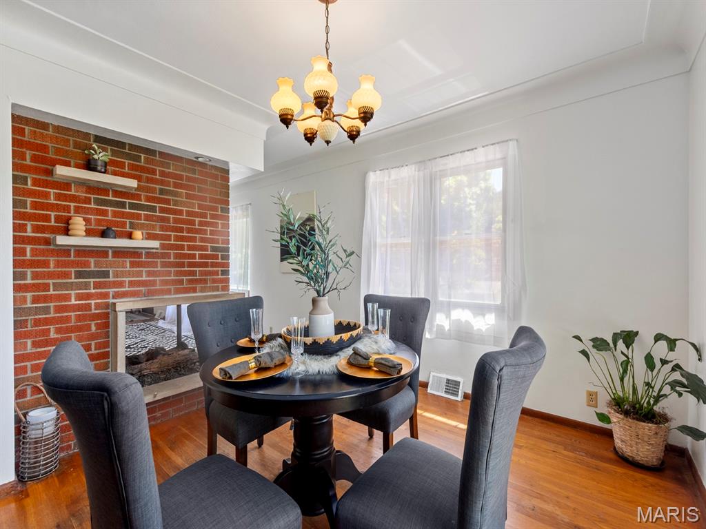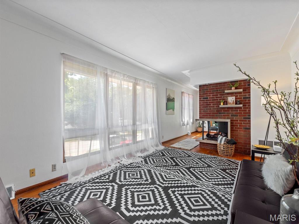 Affordable living in a great central location with easy access to interstates, quaint downtown shops, and local events. You'll love the potential of this well-maintained 3-bedroom home with original hardwood floors ready for refinishing, cove ceiling detail, and a contemporary styled peninsula open fireplace between the large living room and dining space. Vintage kitchen cabinets are in great condition too, with bartop dining. The backyard is semi-secluded, and the lot line extends beyond the trees for flexibility with potential yard space, or just enjoy the treed view. Unfinished basement has great potential for an extra family room or workshop area. Ceilings are already finished in the basement, too. 1-car attached garage with storage cabinets. New roof just installed in June 2025, plus new furnace, and newly cleaned ductwork. Home has already passed municipal inspection, so you can move right in. Call your favorite realtor for a tour today!